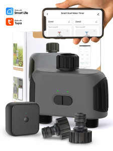 - Upgrade your garden watering system effortlessly with the Muciakie® N175 Smart Garden Timer. Featuring advanced Remote and Voice Control, 2-Zone Watering Control, and 2 Programmable Watering Modes, this timer ensures precise and customized watering for your plants. Enjoy easy operation with no tools required for installation, making it a convenient choice for any garden enthusiast.